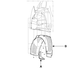 снимите защитный кожух заднего колеса (В).