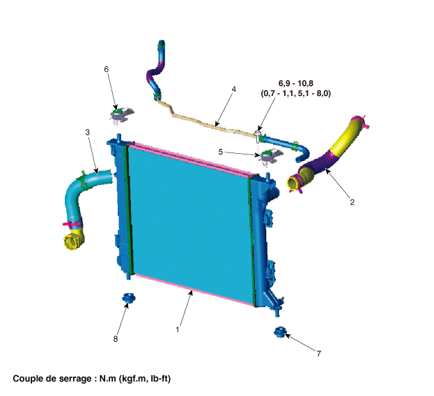 6. Верхний монтажный кронштейн радиатора (D) 7. Изолятор нижнего крепления радиатора [LH] 8. Нижний изолятор крепления радиатора [D] |