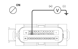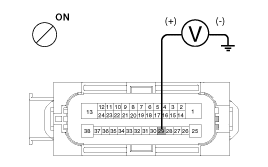 Измерьте напряжение между клеммой (M01-C) 16 разъема со стороны жгута проводов.