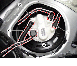 Отсоедините разъем топливного насоса (А).