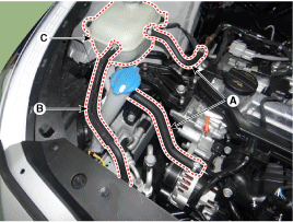 Снимите крышку (B) в нижней части конденсатора с помощью ключа L [Hex 14].
