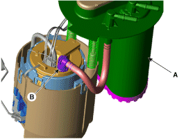 Отсоедините разъем электродвигателя топливного насоса (А) и