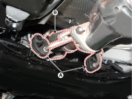 Снимите передний глушитель (В).