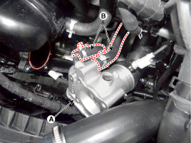 Снимите модуль ETC (A) после отсоединения шлангов для жидкости.