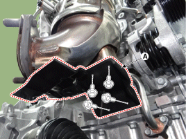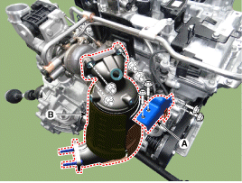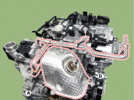 затем снимите каталитический нейтрализатор прогрева (WCC) (B).