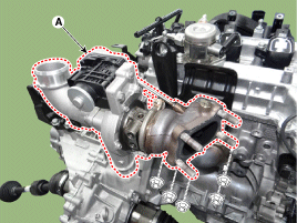 Снимите модуль впускного коллектора турбонагнетателя (А).