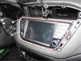 Снимите аудиосистему (А) после отсоединения разъемов и