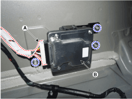 Ослабьте гайки и снимите ЭБУ 4WD (B).