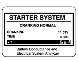 Напряжение запуска и результаты теста стартера будут отображаться на экране.