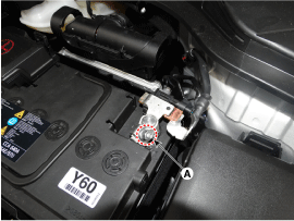 Отсоедините (-) клемму (А) аккумуляторной батареи.