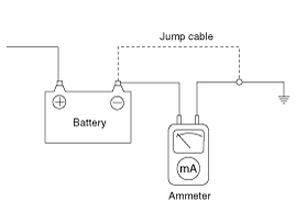 Подключите амперметр последовательно между клеммой аккумулятора (-) и