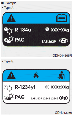Фактическая этикетка хладагента системы кондиционирования воздуха в автомобиле может отличаться от иллюстрация.