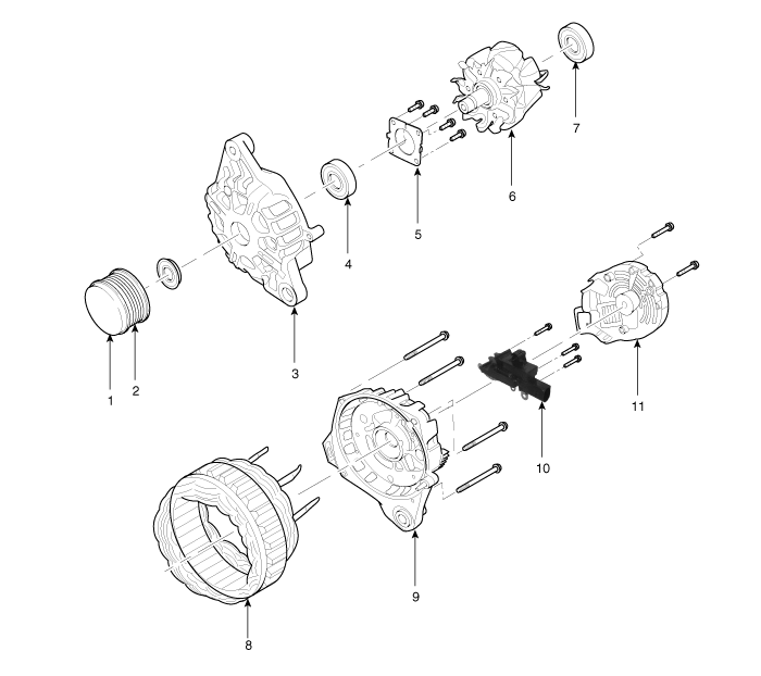 8. Статор 9. Задний корпус 10. Регулятор 11. Задняя крышка |
