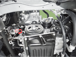 Снимите монтажный кронштейн генератора (B) после ослабления нижнего