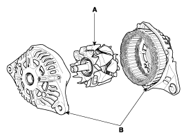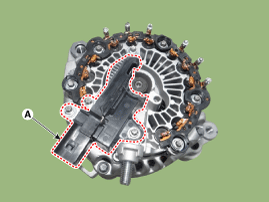 Снимите узел выпрямителя (А) после отсоединения проводов статора.