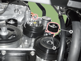 Снимите верхний болт крепления генератора (С).