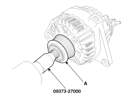 Используя SST (09373-27000), снимите шкив OAP (A).