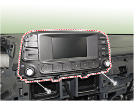 Снимите монтажный кронштейн аудиосистемы (А).