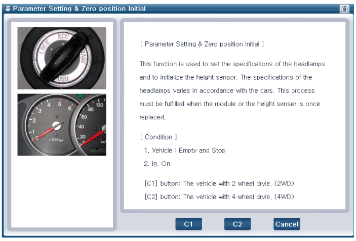 Выберите модель автомобиля и «Автоматическая система регулировки фар (AHLS)».