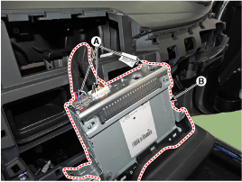 Снимите головное устройство AVN (B) после удаления разъемов и кабелей.