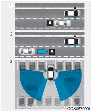 Система контролирует заднюю часть автомобиля и предоставляет информацию водителя звуковым сигналом и индикатором на наружных зеркалах заднего вида.