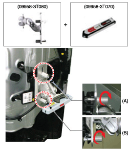 Используйте цифровой инклинометр (специальный инструмент: 09958-3T100) для измерения
