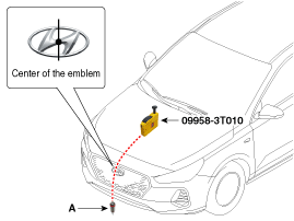 Прикрепите вертикальный отвес (специальный инструмент: 09958-3T010) к капоту,