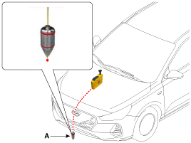 (или дверь багажника) и опустите отвес (A) на землю так, чтобы он