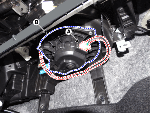 Отсоедините разъем электродвигателя вентилятора (А), затем снимите вентилятор.