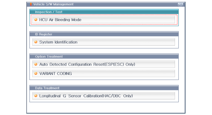 Выберите «модель автомобиля» и «ABS/ESC» на экране выбора автомобиля GDS,