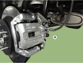 Ослабьте винт для прокачки правого заднего тормоза (А), чтобы воздух вышел из
