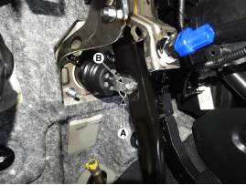 Отсоедините разъем выключателя уровня тормозной жидкости (А).
