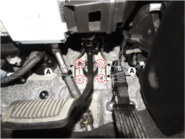 Снимите усилитель тормозов, ослабив гайки крепления усилителя (А).