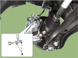 Снимите болт кронштейна тормозного шланга (А).