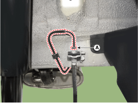 Снимите хомут тормозного шланга (А).