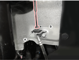 Отделите тормозную трубку после ослабления накидной гайки тормозной трубки (B).