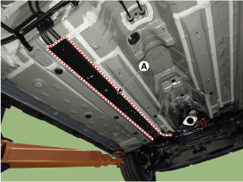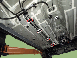 Снимите защиту топливопровода и тормозной магистрали (А).