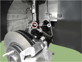 Снимите накидную гайку (А), а затем задний тормозной шланг.
