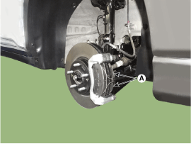 Снимите переднее колесо и шину (А) с передней ступицы.