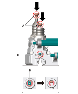 Вставьте специальный инструмент (09430-C1300) (A) в отверстие в уплотнительной резине.