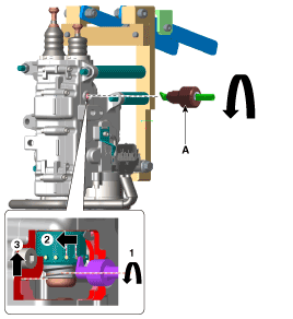 Установите неисправный привод сцепления (A) на специальный сервисный инструмент (09430-C1302).