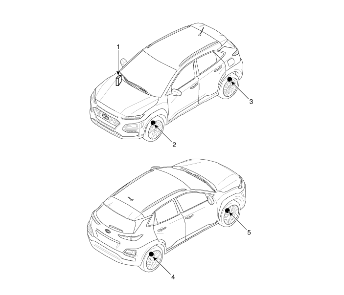 2. Датчик TPMS (FL) 3. Датчик TPMS (RL) |
