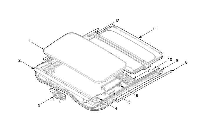 8. Уплотнительная лента 9. Задний капельник 10. Пробка 11. Сборка солнцезащитного козырька 12. Капельница в сборе |