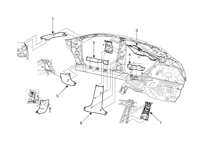6. Нижняя обшивка центральной стойки 7. Верхняя обшивка центральной стойки |