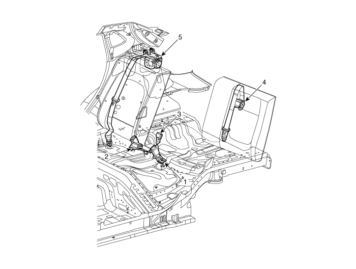 2. Замок заднего ремня безопасности [правый] 3. Соединитель центрального ремня безопасности. |
