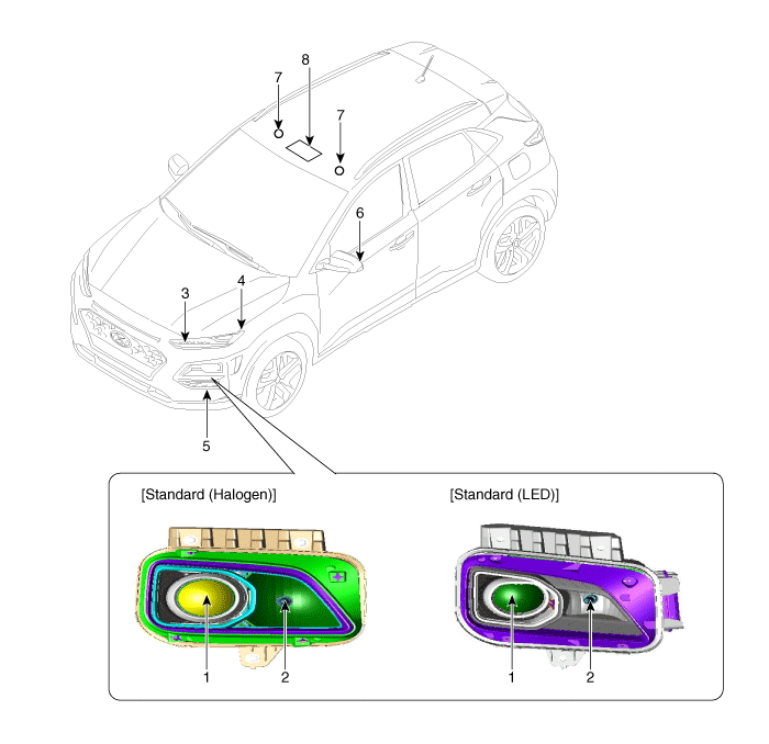 2. Фара головного света (дальний свет) 3. Дневные ходовые огни (ДХО) 4. Лампа указателя поворота |