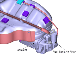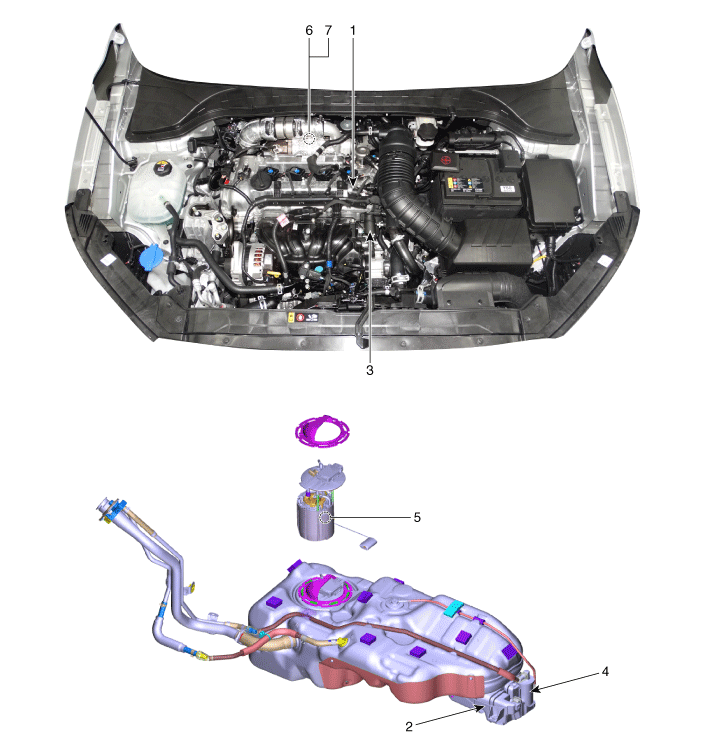 2. Канистра 3. Электромагнитный клапан управления продувкой (PCSV) 4. Воздушный фильтр топливного бака |