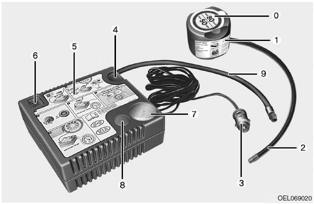бутылка с герметиком или компрессор и колесо