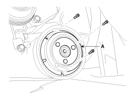 Снимите болт сцепления (А), удерживая шкив сцеплением.