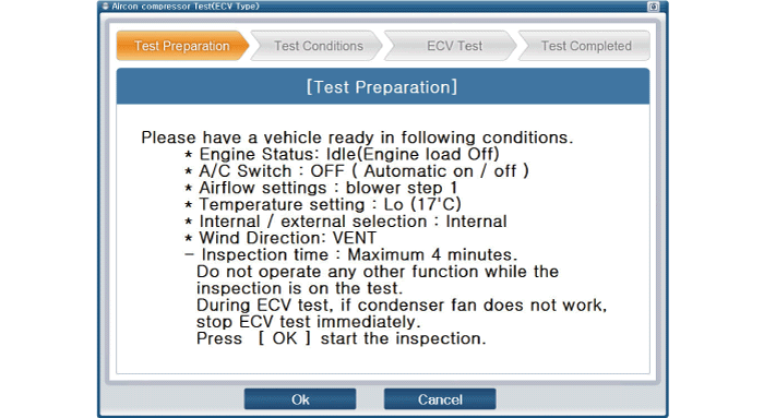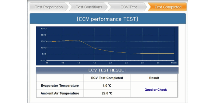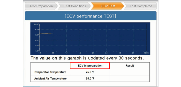 Подключите GDS к автомобилю и выберите «Тест компрессора кондиционера (ECV)».